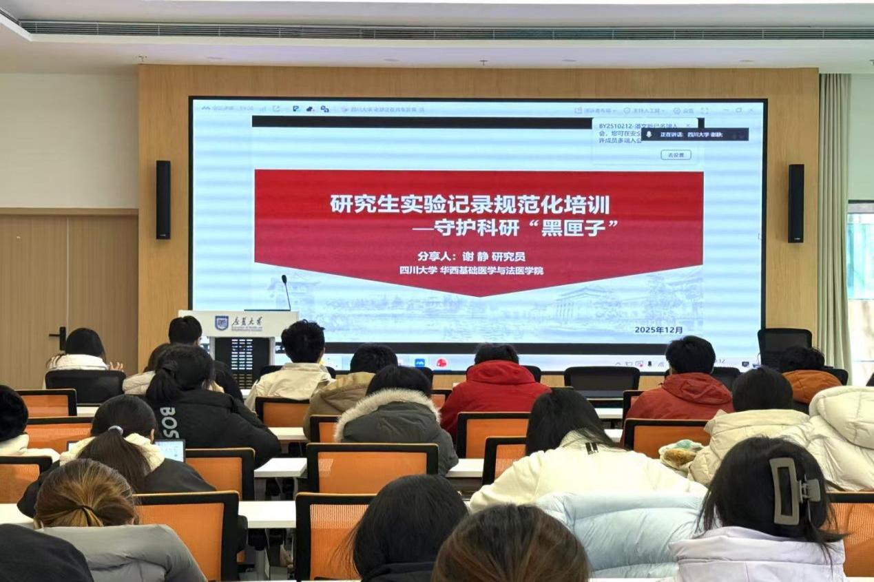 为切实加强科研诚信教育,系统提升研究生的科研基本功与学术规范意识,2025年12月26日上午,康复大学研究生处举办“研究生实验记录标准化培训”讲座。本次讲座特邀四川大学华西基础医学与法医学院特聘研究员谢静担任主讲,吸引了来自校本部及各附属医院的140余名师生线上线下同步参与。